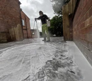 Chemical softwash treatment helps us to get the best results, but it will also eradicate organic spores in the surface. This will help your paving to stay cleaner for longer!